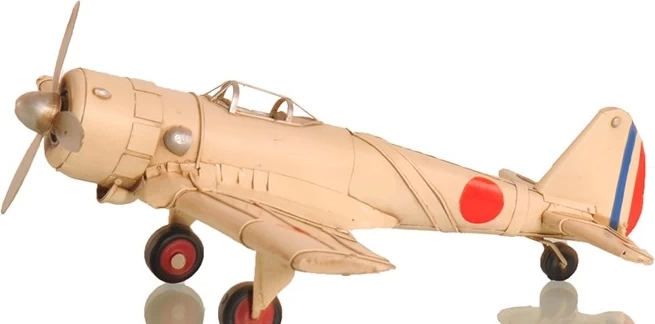 The Nakajima Ki-43 Oscar was an air superiority fighter designed for the army operations. The aircraft saw action in many battles of the Pacific primarily in support of Japanese ground forces. Unlike many aircraft of the war that has faded into obscurity, the ki-43 has remained prominent today due to its countless appearance in movies, games, and various other art forms as a symbol of Japan’s resilience as the United States pushed closer to Japan mainland. Its service history allows for an engaging conversation piece or simply as a token of a time when battleships ruled the seas. Features a full tin construction, clean paint, rotating propellers, and rolling landing gears. The red painted circles are vibrant, bold, and contrast well against the white body. The engine cooling to very detail with exhaust vents and flaps. It makes for the perfect gift for anyone or as small item to decorate a house. Places it could fit include a table, counter, shelf, or maybe a work desk.