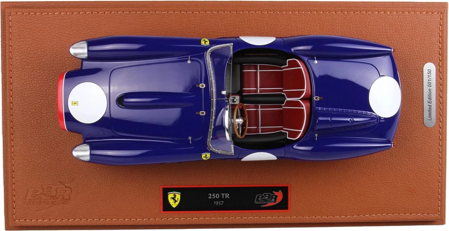 This is the 1957 Ferrari 250 Testarossa blue with Display Case in 1:18 scale by BBR.