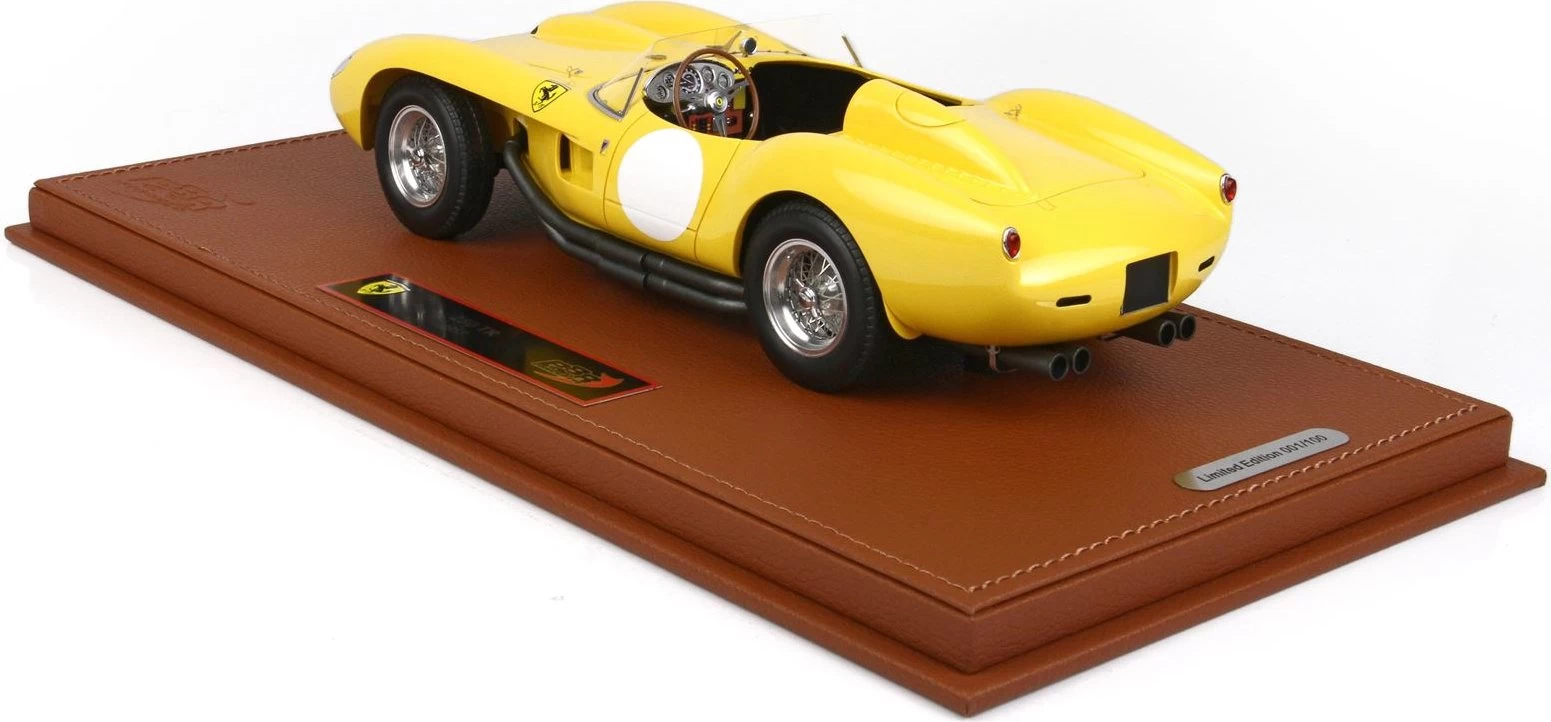 This is the 1957 Ferrari 250 Testarossa Race Version Yellow with Display Case in 1:18 scale by BBR.