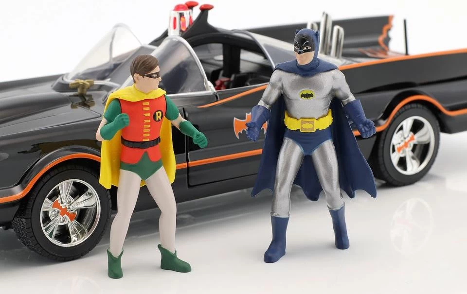 This is the 1966 Batmobile w/Lights & Batman & Robin Figures in 1:18 Scale by Jada.
