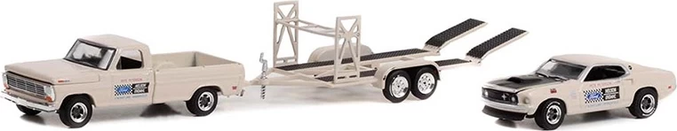 This is the 1969 Ford F-100 Pickup and 1969 Ford Mustang Boss 429 Nelson Ekdahl Ford #133 on Tandem Car Trailer in 1:64 scale.