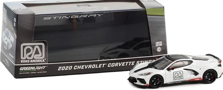 This is the 2020 Chevrolet Corvette C8 Stingray Coupe Road America Pace Car in 1:43 scale by Greenlight.