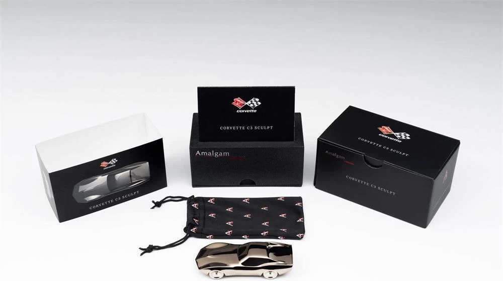 Amalgam are delighted to announce that a new range of beautiful miniature sculptures has been launched. Designed by Remco de Reus, this new addition to the Amalgam Collection captures the essence of the most sculpturally interesting and outrageous designs throughout the history of the car. Each sculpture is hand-cast in stone filled resin, hand finished and plated in aluminium, followed by five coats of spray painting with a tinted lacquer, the colour of which reflects our impression of the vogue of each era. The first of cars to be immortalized in Amalgam sculptures is the Chevrolet Corvette.