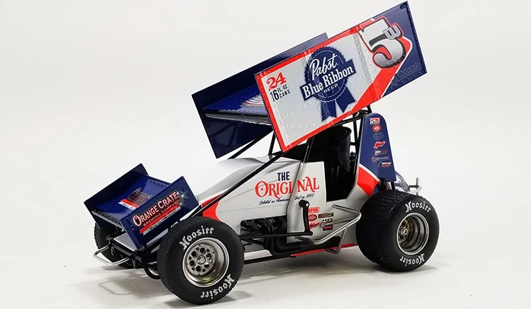 This is the 2022 #5W PABST BLUE RIBBON SPRINT CAR LUCAS WOLFE in 1:18 scale by Acme.