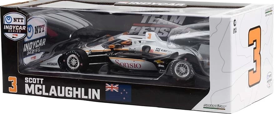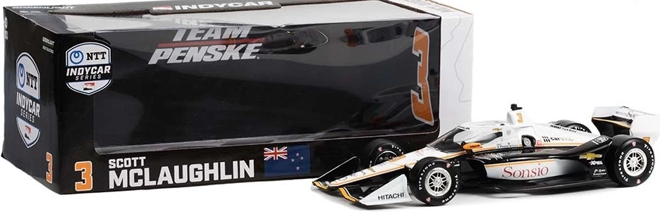 This is the 2022 NTT IndyCar Series #3 Scott McLaughlin / Team Penske, Sonsio Vehicle Protection (Road Course Configuration) in 1:18 scale by Greenlight.