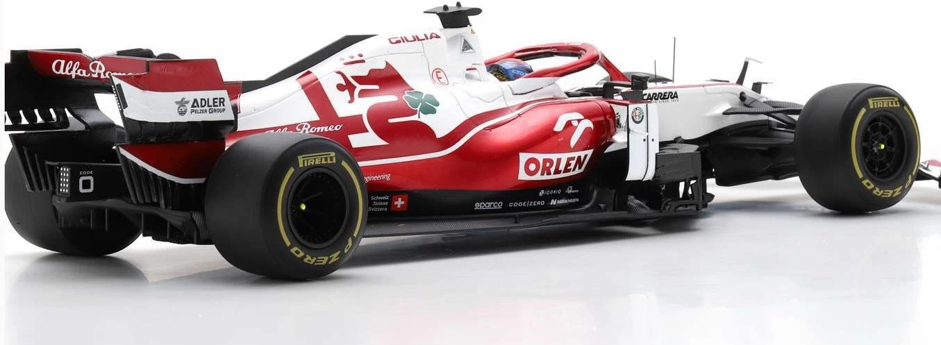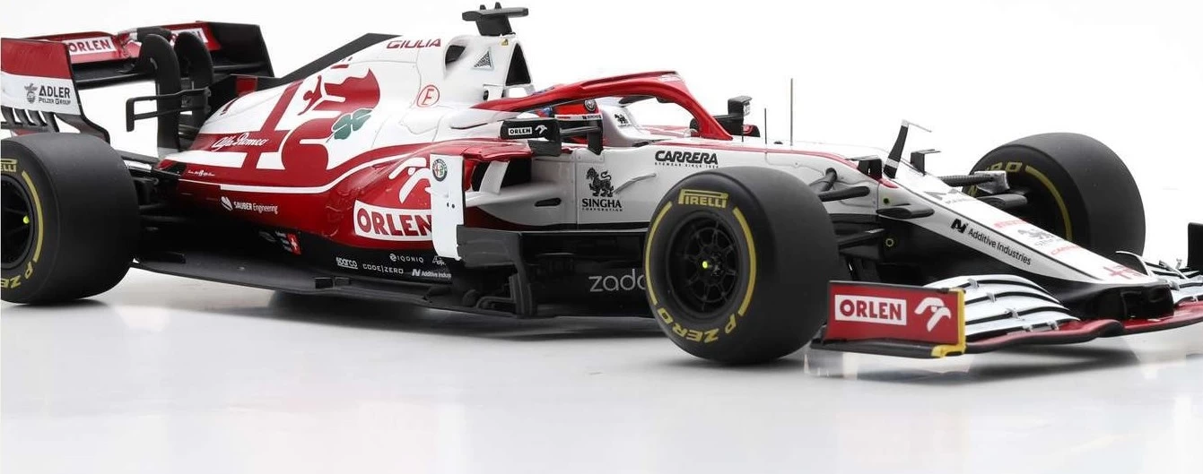 This is the ALFA ROMEO RACING ORLEN C41 #7 ALFA ROMEO SAUBER F1 TEAM BAHRAIN GP 2021 KIMI RÄIKKÖNEN in 1:18 scale by Spark.