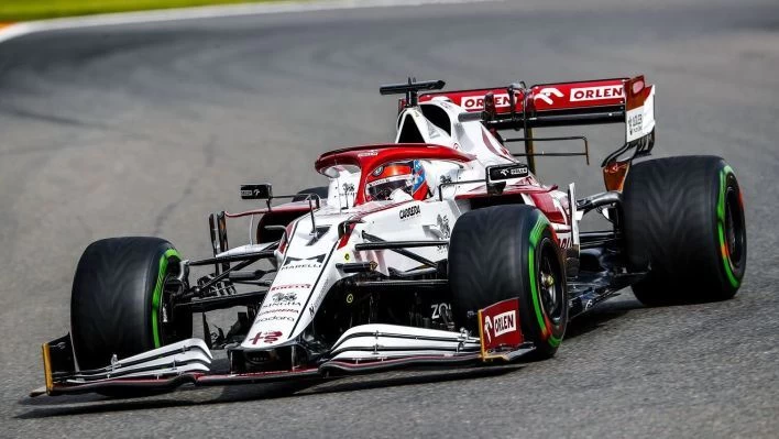 This is the ALFA ROMEO RACING ORLEN C41 KIMI RAIKKONEN FINAL RACE ABU DHABI GP 2021 in 1:18 scale by Minichamps.