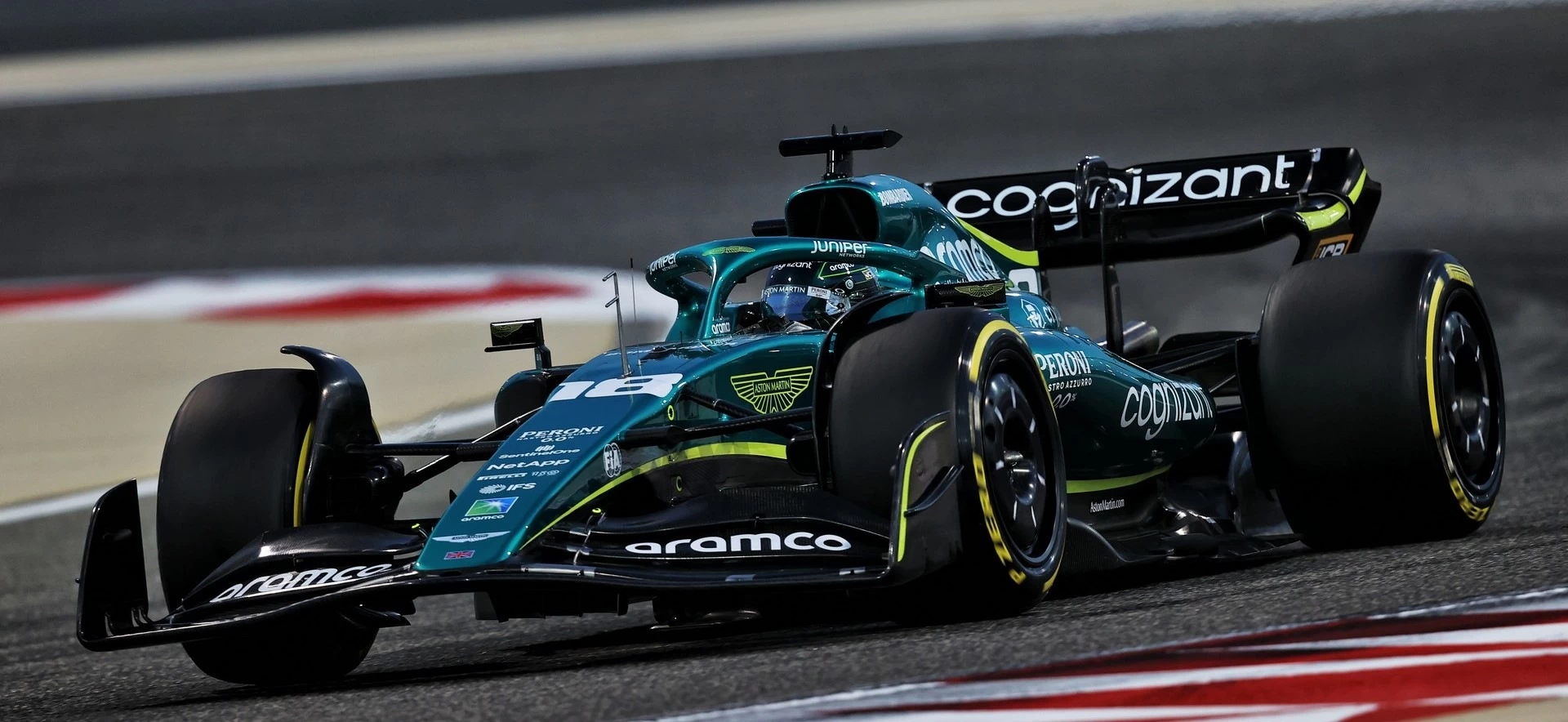 This is the ASTON MARTIN LANCE STROLL BAHRAIN GP 2022 in 1:43 scale by Minichamps.