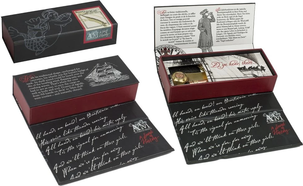 Classic bosun whistle makes deck hands happy. To man the sails, go aloft, or defend the ship in action, “All hands on deck” was one of the commands blown by the Bosun’s Mates on this whistle or “call”. Its shape hasn’t changed in five centuries.