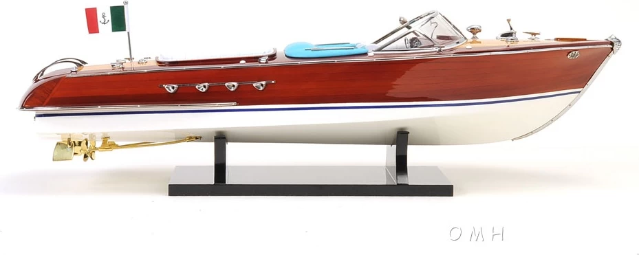 This is a beautiful 100% handcrafted mahogany Riva Aquarama model. Painted in the true color of the boat. It take hundreds of hours to build by skillful and creative master craftsmen. Contains hundreds of beautiful details such as shiny chrome and brass fittings and very detailed dashboard and leather seats. Layers of vanishes are applied; the hull is then smoothly sanded between coats to create a mirror effect. This model was built according to scale through original plans, pictures and drawings. Extensive research thru original plans and pictures makes our model look authentic. Each model goes thru a demanding quality control process before leaving our workshop. Rested in a neat wood stand. Model shipped fully assembled. This item is just as luxurious as the real boat.