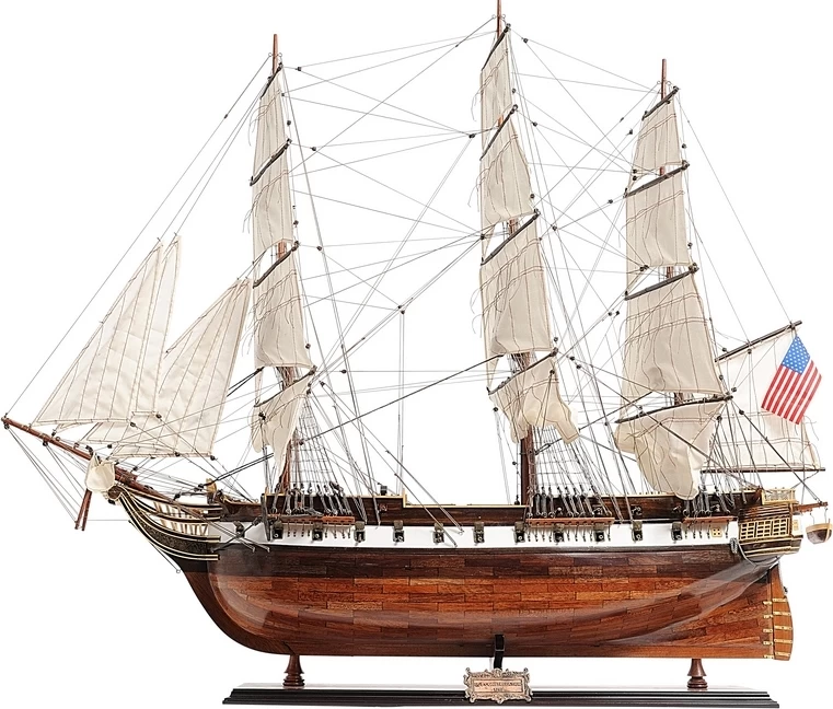 USS Constellation was a nominally rated 38-gun wooden-hulled, three-masted frigate of the United States Navy. She was built under the direction of David Stodder at The Joseph and Samuel Sterett shipyard on Harris Creek in Baltimore’s Fell’s Point maritime community, and she was launched on 7 September 1797. She was one of the original six frigates whose construction the Naval Act of 1794 had authorized. The name “Constellation” was among ten names submitted to President George Washington by Secretary of War Timothy Pickering in March of 1795 for the frigates that were to be constructed. The Flag Act of 1777 speaks of how the stars in the flag are “representing a new constellation.”